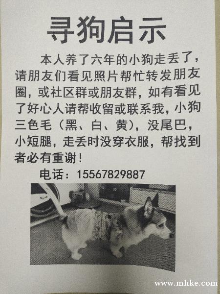 柯基犬,六歲了,斷尾。12月29日在北部新城附近走失,監(jiān)控內(nèi)最后一次出是東街大燈。有看見的朋友提供一下線索,都養(yǎng)了好多年了,自己家孩子一樣。如有看見的好心人請幫收留或聯(lián)系我。走丟時沒穿衣服,幫忙找到者必有重謝??! 聯(lián)系我時,請說是在梅小網(wǎng)看到的,謝謝!