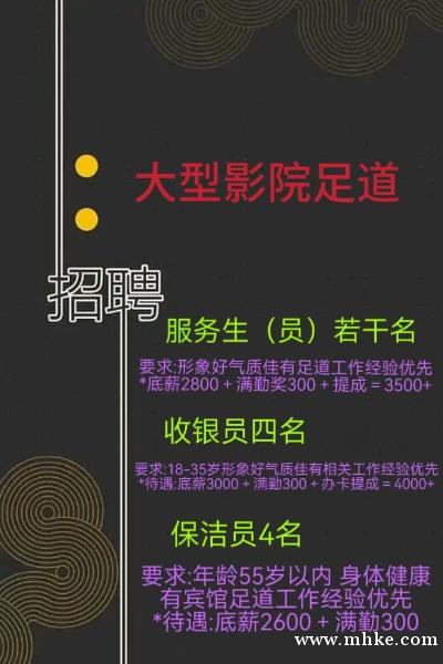 大型影院足道 招聘以下崗位 服務(wù)生服務(wù)員前臺人員