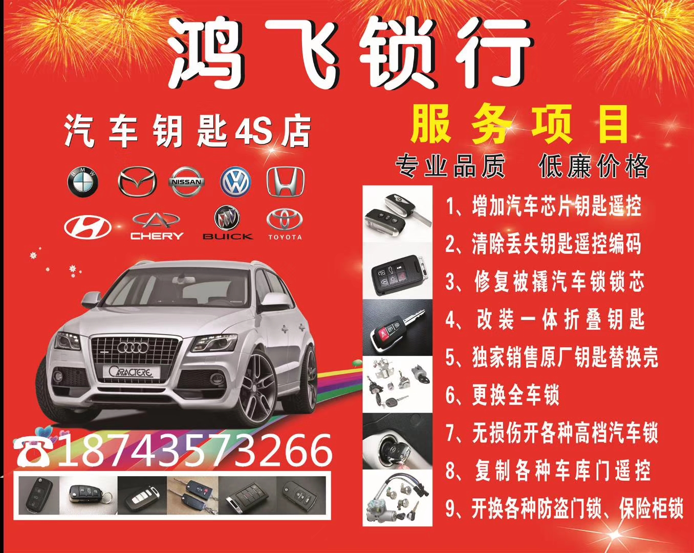 鴻飛鎖行專業(yè)汽車鑰匙