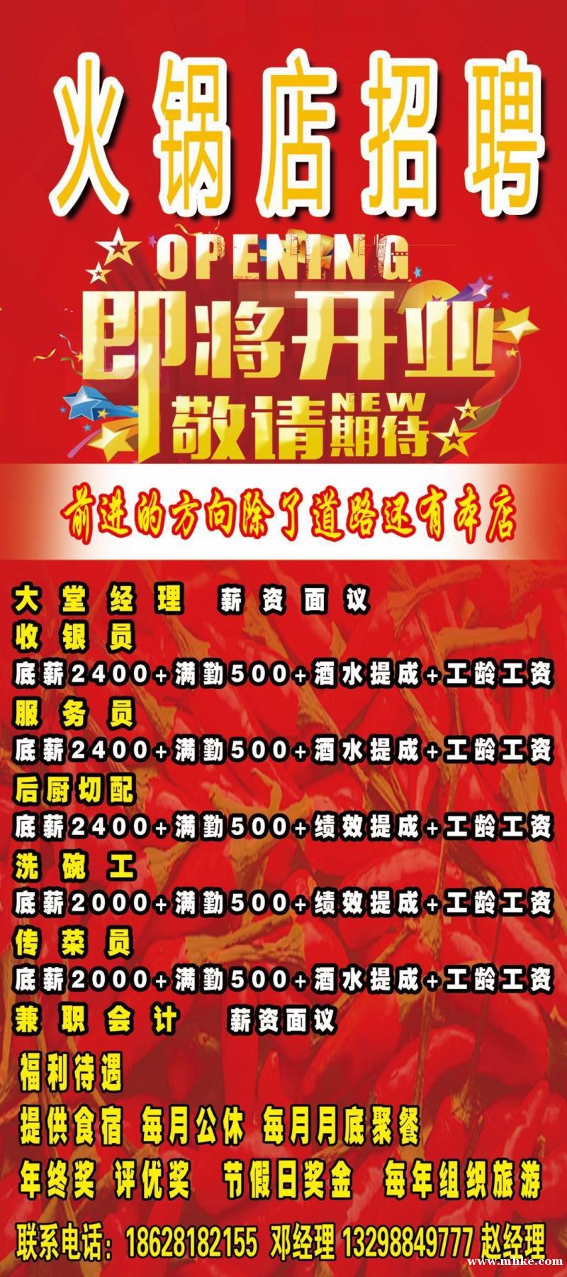 火鍋店高薪招聘 工資3000以上
